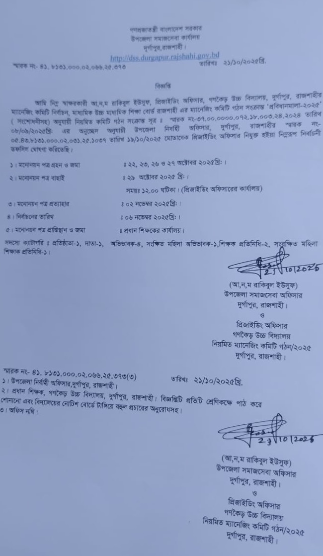 কমিটি নির্বাচন সংক্রান্ত জরুরি নোটিশ